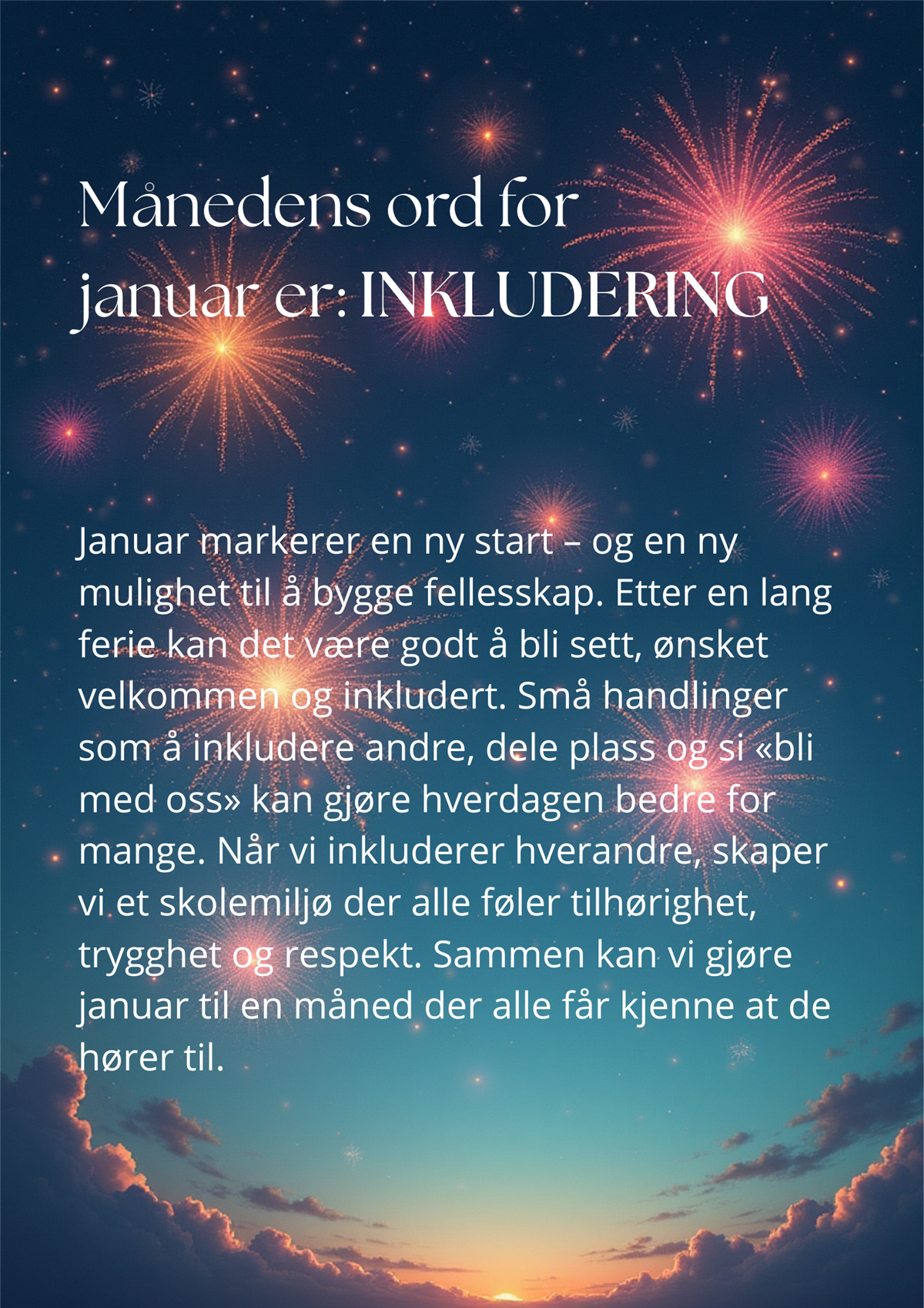 Elevrådet har bestemt seg for å fokusere på psykisk helse dette skuleåret. Kvar månad vil dei velje eit ord som dei ønskjer at det skal vere ekstra fokus på på skulen, både i og utanfor klasserommet.